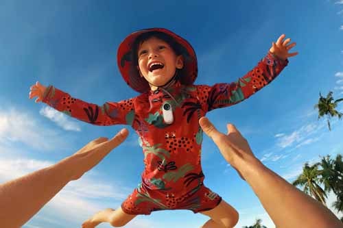 夏のプール・海・雨の日のお出掛けなど、スマホだと少し不安な場面でもアクションカメラなら安心です。